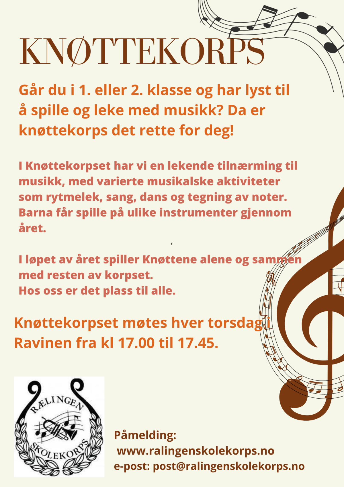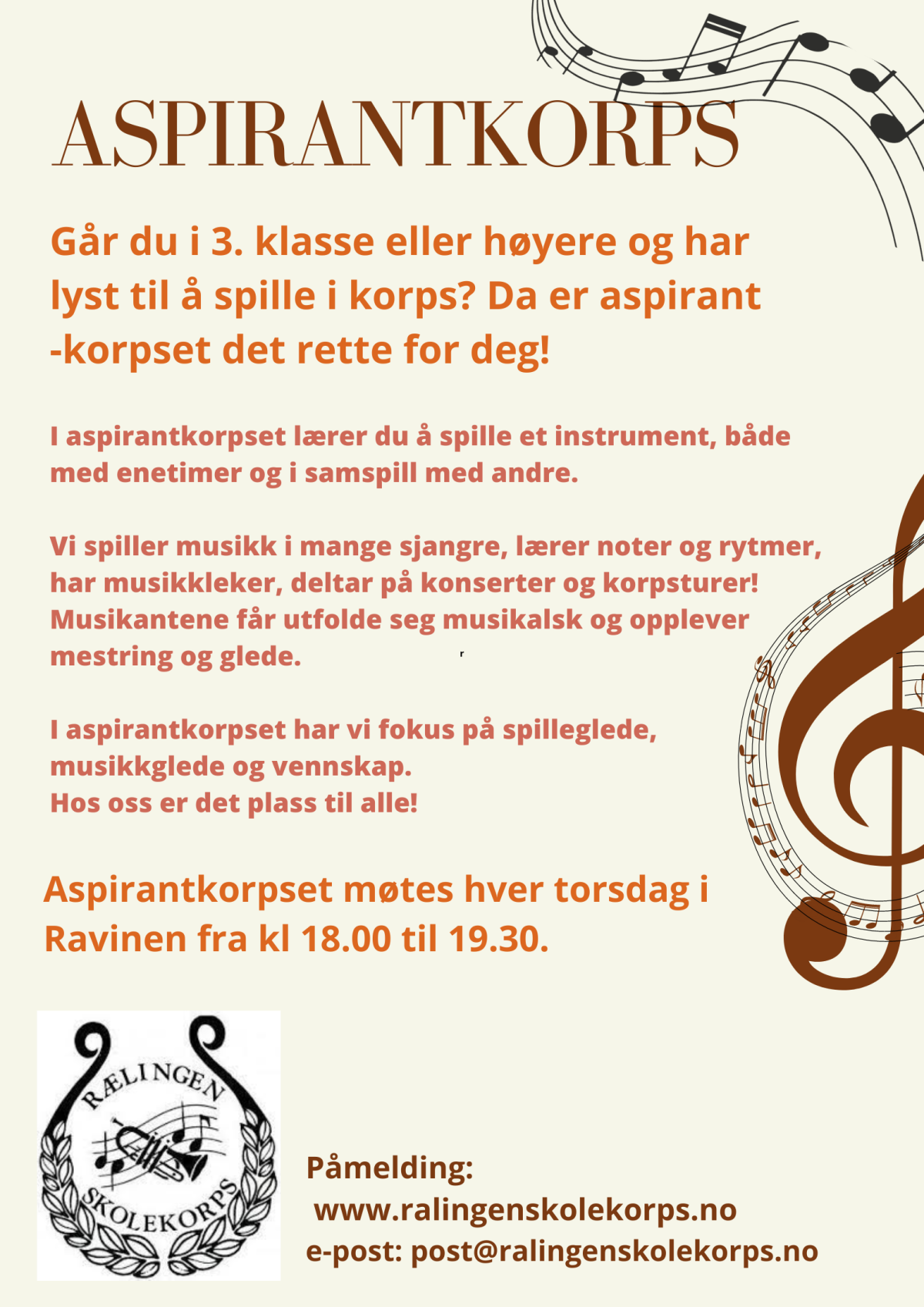 Har du lyst til å lære å spille et blåseinstrument eller slagverk, meld deg inn i Rælingen skolekorps!
